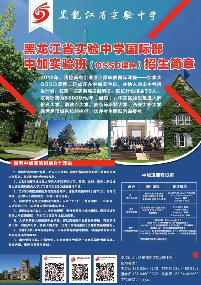 今年,經有關部門(mén)批複、批準,哈爾濱市鷹沙中加學校國際部首次開(kāi)設中加實驗班(OSSD課程),納入哈市招生(shēng)計(jì)劃,面向中考招生(shēng),計(jì)劃招收70人(rén)。此消息一經發布,立即引起家(jiā)長和(hé)考生(shēng)們極大(dà)關注,紛紛來(lái)校、緻電(diàn)咨詢詳情。省實驗中學現把各類咨詢進行(xíng)彙總,就共性問題一一給予詳細解答(dá),供各位考生(shēng)和(hé)家(jiā)長報考志(zhì)願時(shí)參考。