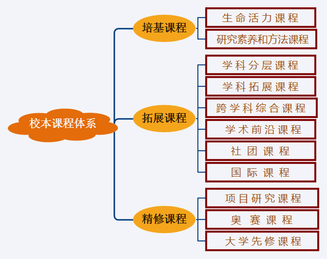 2.拓展課程,面向的是學生(shēng)群體(tǐ),屬于自主選修課程,課程內(nèi)容涉及學科分層課程、學科拓展課程、跨學科綜合課程、學術(shù)前沿課程、社團課程、國際課程,滿足不同學生(shēng)興趣和(hé)個(gè)性發展需要。