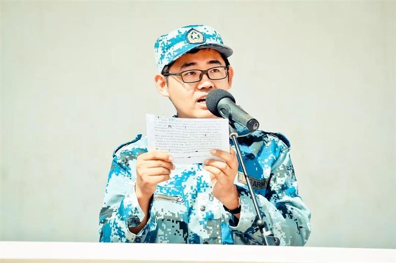 部隊教官代表代表全體(tǐ)作(zuò)訓教官承諾:嚴格要求自身,展示良好的軍人(rén)形象;履行(xíng)教官職責,盡心盡力完成作(zuò)訓任務;并會以兄長般的關懷給予同學們幫助和(hé)鼓勵。