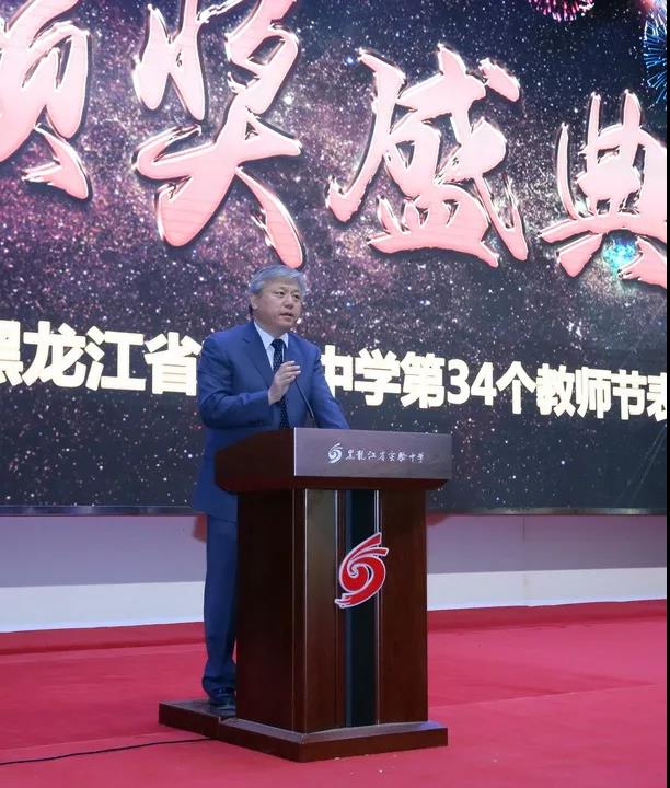 9月10日下午,我校在新落成的綜合報告廳隆重舉行(xíng)了以“弘揚高尚師(shī)德,潛心立德樹(shù)人(rén)”為(wèi)主題的第34個(gè)教師(shī)節表彰大(dà)會。全體(tǐ)教職員工、部分退休教師(shī)、高一全體(tǐ)同學參會。省教育廳副廳長姜同河(hé)、省教育廳機關黨委書(shū)記金陽,省教育廳基教二處處長李君明(míng),基教二處副處長劉德宏等領導特地來(lái)到學校,與老師(shī)們一起慶祝這個(gè)節日。