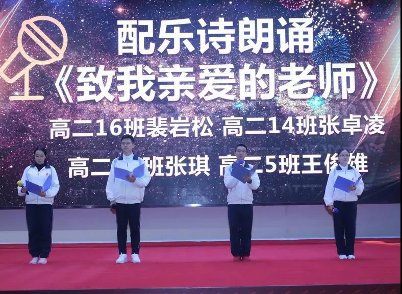 高二學年四名學生(shēng)的詩朗誦,掀起頒獎典禮又一個(gè)高潮,随着悠揚的樂曲,深情的朗誦,聽(tīng)着學生(shēng)溫暖動人(rén)的聲音(yīn),似乎所有老師(shī)都想起和(hé)學生(shēng)在一起的點點滴滴,似乎所有人(rén)都再次感受到自己在老師(shī)那(nà)裏得(de)到的滋養,感受到教師(shī)這個(gè)職業的神聖與光榮。