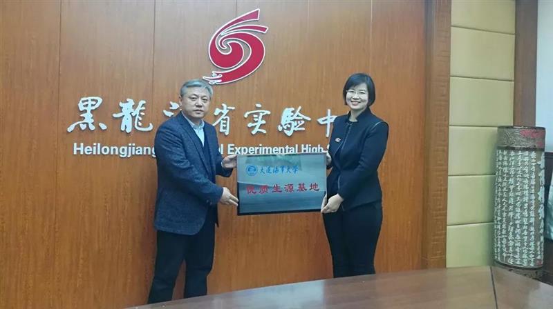 1月7日,大(dà)連海事大(dà)學外國語學院黨委副書(shū)記兼副院長呂海甯、外國語學院指導員劉東宇來(lái)到我校,将“優質生(shēng)源基地牌匾”親手交到孫景峰校長手中。