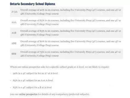 英國大(dà)學對OSSD 入學要求
