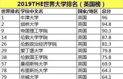 2019年泰晤士報世界大(dà)學排名,共有11所英國大(dà)學進入世界百強行(xíng)列,其中部分學校排名如下