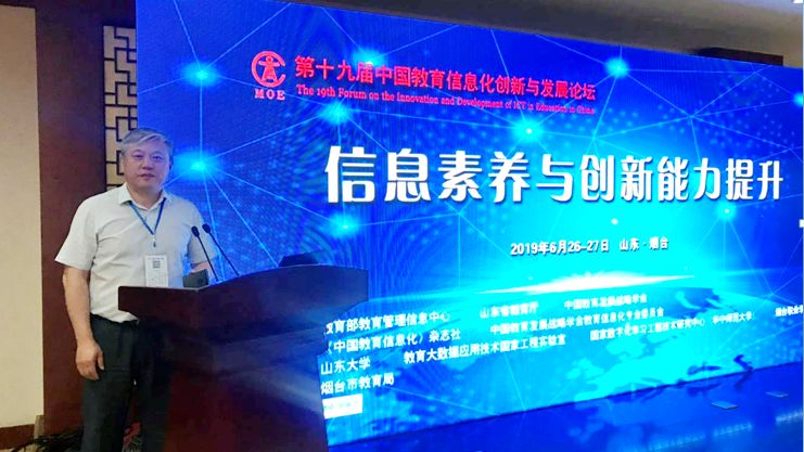 6月26日、27日,第十九屆中國教育信息化創新與發展論壇暨教育信息化應用成果展示交流活動在山(shān)東省煙台國際會議中心召開(kāi)。我校孫景峰校長和(hé)郭大(dà)鵬主任參會,孫校長應邀做(zuò)了《重構師(shī)生(shēng)信息化素養 推動信息技(jì)術(shù)與教學深度融合》的報告。