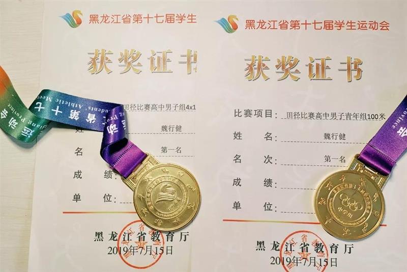 第一次市區(qū)級運動會比賽,四項冠軍 2019年4月份,魏行(xíng)健代表我校參加南崗區(qū)中學生(shēng)運動會,在田徑200米、400米個(gè)人(rén)賽中,獲得(de)兩項第一名。5月份,代表我校參加市重點高中組比賽,獲得(de)100米、200米冠軍。第一次亮相田徑賽場(chǎng)交上(shàng)這樣的答(dá)卷,17歲的魏行(xíng)健逐漸成為(wèi)賽場(chǎng)上(shàng)讓人(rén)無法忽略的一顆新星。