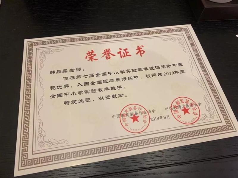 在10月10日至14日于青島舉辦的“第七屆全國中小(xiǎo)學實驗教學說課活動”中,我校化學教研室韓晶晶老師(shī)代表黑(hēi)龍江省參賽,榮獲“全國中小(xiǎo)學實驗教學能手”榮譽稱号,并成功入選教育部儀器(qì)設備中心優秀人(rén)才專家(jiā)庫,同時(shí)獲得(de)“說課好聲音(yīn)”優秀獎!