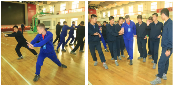 體(tǐ)育課 漢語作(zuò)為(wèi)俄羅斯學生(shēng)的必修課,每位同學都能來(lái)上(shàng)幾句呢, 授課老師(shī)們用臨時(shí)學的俄語打招呼表示歡迎,也讓俄羅斯師(shī)生(shēng)感到驚喜,課堂上(shàng)演練與講解結合,學生(shēng)展示加分組練習,同學們快速地學習模仿起來(lái);汪新妍老師(shī)還(hái)對其中的攻防含義進行(xíng)了詳細的講解,同學們了解後連連稱贊。 通(tōng)過一堂課的時(shí)間(jiān),掌握一些(xiē)基本的太極拳動作(zuò),産生(shēng)學習的興趣和(hé)進一步了解的欲望,更在與中國同學共同學習的過程中加深情感交流。