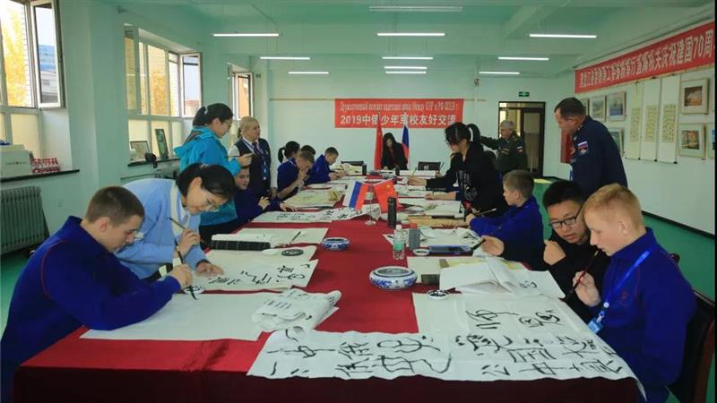 美術(shù)課 到中國體(tǐ)驗一把中國傳統書(shū)法繪畫(huà),美術(shù)老師(shī)王玉霞老師(shī)早就備好宣紙毛筆和(hé)墨汁,教俄羅斯同學體(tǐ)驗漢字一筆一劃的含義,方正結構圓潤筆觸的魅力,中國畫(huà)的意境,每個(gè)人(rén)都在老師(shī)指導下完成一幅書(shū)畫(huà)作(zuò)品,留作(zuò)珍貴的紀念。