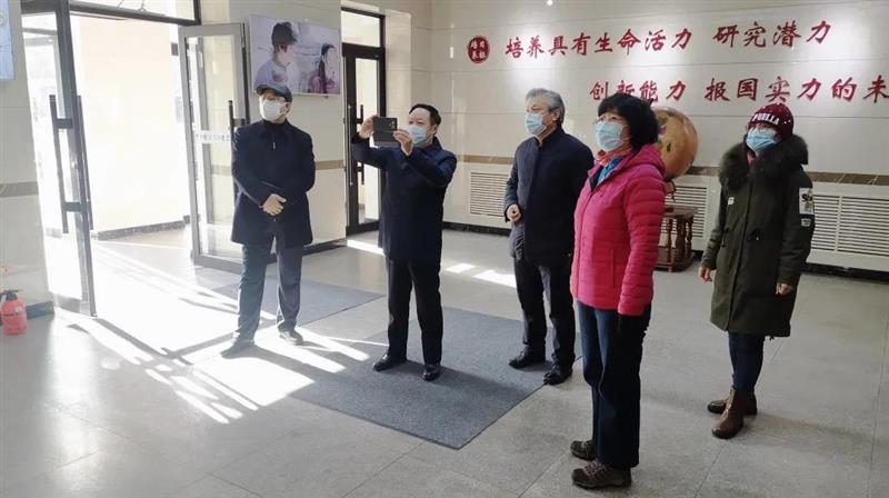 馮秋萌副局長和(hé)張國明(míng)處長走進學校食堂、隔離室、物資儲備室,學生(shēng)教室等場(chǎng)所,細緻了解防控流程的每一個(gè)環節。符麗(lì)萍書(shū)記介紹了我校防疫情況工作(zuò)和(hé)防疫物資儲備情況。包括我校自動報警測溫門(mén)、洗手機器(qì)人(rén)等現代化防疫防控設備的配置,一次性口罩、手套的儲備情況和(hé)對家(jiā)長提前儲備口罩的倡議等。馮副局長認為(wèi)我校防控防疫工作(zuò)細緻,具有一定的前瞻性。