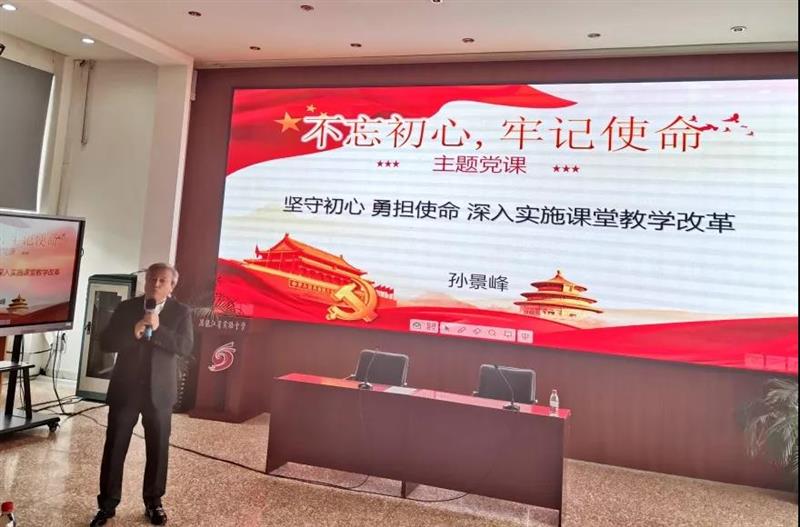 為(wèi)持續深入推進“不忘初心、牢記使命”主題教育,激勵引導全體(tǐ)教師(shī)踐行(xíng)初心使命、錘煉優良作(zuò)風,助推學校各項工作(zuò)實現高質量發展,10月23日下午,我校全體(tǐ)教師(shī)到近賢館五樓階梯教室,聽(tīng)書(shū)記、校長講專題黨課。省委教育工委“不忘初心、牢記使命”主題教育第一指導組龐勝國、劉慧瑩列席此次黨課。 校黨委書(shū)記符麗(lì)萍首先進行(xíng)了“不忘初心、牢記使命 紮實推進學校各項工作(zuò)”的黨課講座,符書(shū)記從堅定理(lǐ)想信念、提高思想認識,找準差距,對标整改,抓好落實幾個(gè)方面,闡述了“不忘初心、牢記使命”主題教育的重大(dà)意義,省實驗教師(shī)的“初心與使命”,強調“不忘初心,要守住本分,堅定理(lǐ)想信念 ”, “牢記使命,要以人(rén)為(wèi)本,把師(shī)生(shēng)利益擺在首位” ,激勵全校黨員教師(shī)保持理(lǐ)想、堅守信仰。 符書(shū)記還(hái)通(tōng)過生(shēng)動的黨史故事的講述,号召大(dà)家(jiā)發揚共産黨人(rén)的優秀品質,忠于黨、忠于人(rén)民、無私奉獻,全心全意為(wèi)人(rén)民服務。