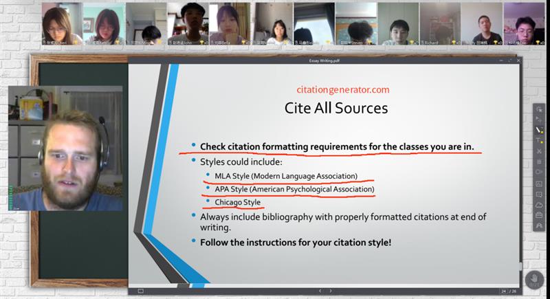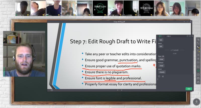 我們在線日常的教學中,同樣積極培養學生(shēng)的批判性思維的能力。并通(tōng)過外籍教師(shī)開(kāi)展線上(shàng)學術(shù)論文寫作(zuò)講座。
