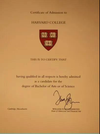 哈佛錄取通(tōng)知書(shū)