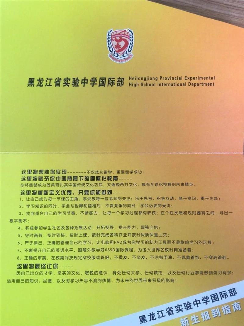 在錄取通(tōng)知書(shū)的背後,我們附加了一頁由我校從南開(kāi)大(dà)學畢業的博士曹利雲老師(shī)寫作(zuò)的《哈爾濱市鷹沙中加學校賦》,這裏面所蘊含的是省實驗之魂。