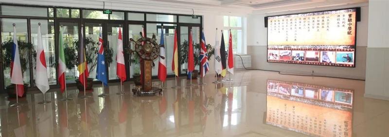莊重的國際部徽章,無論是外觀樣式抑或空(kōng)間(jiān)布局,與前後英文相得(de)益彰,完美和(hé)諧,遙遠古樸與近代美感交相輝映。